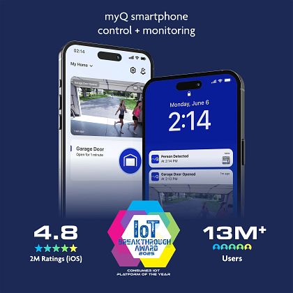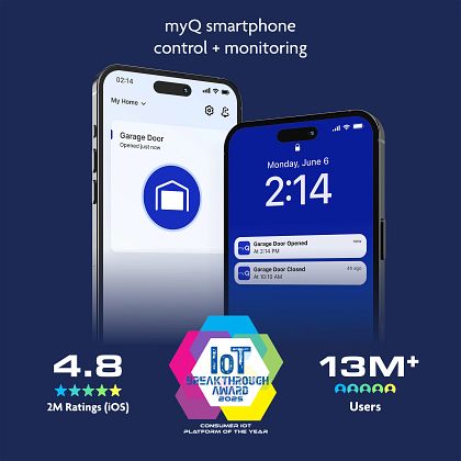• Monitor and control your garage door with the myQ app